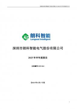 [企业年报]朗科智能:2025年半年度报告(银创产业通www.chanyetong.net)