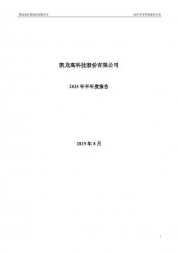 [企业年报]凯龙高科:2025年半年度报告(银创产业通www.chanyetong.net)