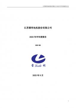 [企业年报]江苏雷利:2025年半年度报告(银创产业通www.chanyetong.net)
