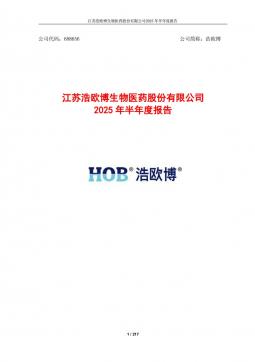 [企业年报]浩欧博:江苏浩欧博生物医药股份有限公司2025年半年度报告(银创产业通www.chanyetong.net)