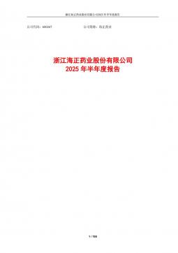 [企业年报]海正药业:浙江海正药业股份有限公司2025年半年度报告(银创产业通www.chanyetong.net)