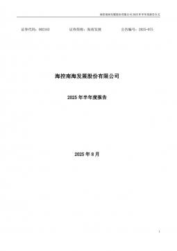 [企业年报]海南发展:2025年半年度报告(银创产业通www.chanyetong.net)