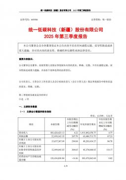 [企业年报]统一股份:统一低碳科技(新疆)股份有限公司2025年第三季度报告(银创产业通www.chanyetong.net)