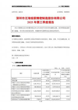 [企业年报]统联精密:深圳市泛海统联精密制造股份有限公司2025年第三季度报告(银创产业通www.chanyetong.net)