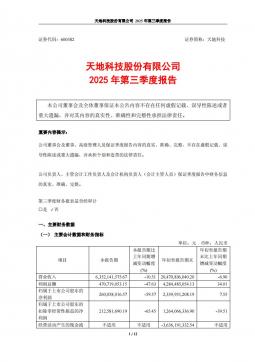 [企业年报]天地科技:天地科技2025年第三季度报告(银创产业通www.chanyetong.net)