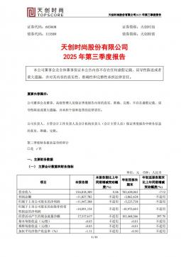[企业年报]天创时尚:2025年第三季度报告(银创产业通www.chanyetong.net)