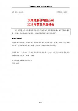 [企业年报]天津港:天津港股份有限公司2025年第三季度报告(银创产业通www.chanyetong.net)