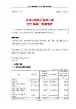 [企业年报]天风证券:天风证券股份有限公司2025年第三季度报告(银创产业通www.chanyetong.net)