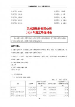 [企业年报]天地源:天地源股份有限公司2025年第三季度报告(银创产业通www.chanyetong.net)