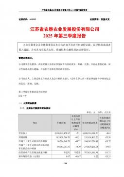 [企业年报]苏垦农发:苏垦农发2025年第三季度报告(银创产业通www.chanyetong.net)