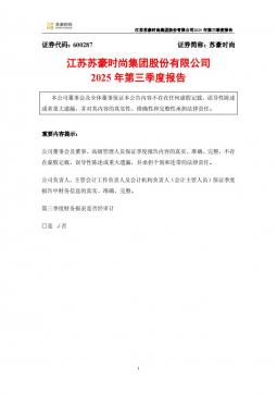 [企业年报]苏豪时尚:苏豪时尚2025年第三季度报告(银创产业通www.chanyetong.net)