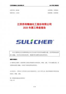 [企业年报]苏利股份:苏利股份2025年第三季度报告(银创产业通www.chanyetong.net)