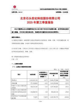 [企业年报]石头科技:北京石头世纪科技股份有限公司2025年第三季度报告(银创产业通www.chanyetong.net)