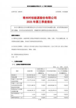 [企业年报]时创能源:常州时创能源股份有限公司2025年第三季度报告(更正后)(银创产业通www.chanyetong.net)