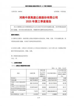 [企业年报]中原高速:河南中原高速公路股份有限公司2025年第三季度报告(银创产业通www.chanyetong.net)