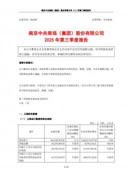 [企业年报]中央商场:南京中央商场(集团)股份有限公司2025年第三季度报告(银创产业通www.chanyetong.net)