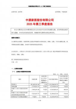 [企业年报]中源家居:中源家居股份有限公司2025年第三季度报告(银创产业通www.chanyetong.net)