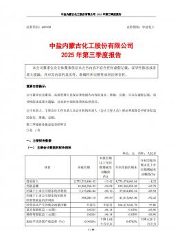 [企业年报]中盐化工:中盐化工2025年第三季度报告(银创产业通www.chanyetong.net)