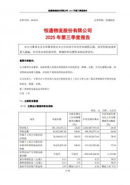 [企业年报]恒通股份:恒通物流股份有限公司2025年第三季度报告(银创产业通www.chanyetong.net)
