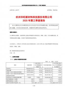 [企业年报]华旺科技:杭州华旺新材料科技股份有限公司2025年第三季度报告(银创产业通www.chanyetong.net)