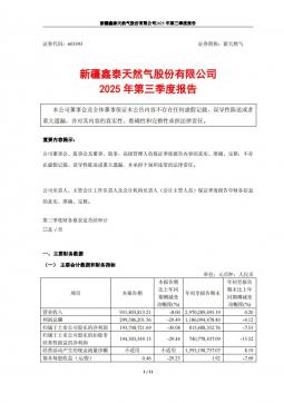 [企业年报]新天然气:新天然气-2025年第三季度报告(银创产业通www.chanyetong.net)