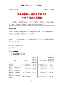[企业年报]鑫科材料:鑫科材料2025年第三季度报告(银创产业通www.chanyetong.net)
