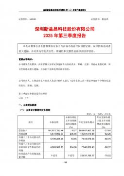 [企业年报]新益昌:深圳新益昌科技股份有限公司2025年第三季度报告(银创产业通www.chanyetong.net)