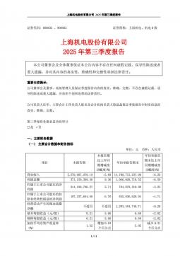 [企业年报]上海机电:上海机电2025年第三季度报告(银创产业通www.chanyetong.net)