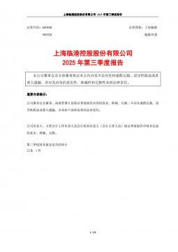 [企业年报]上海临港:2025年第三季度报告(银创产业通www.chanyetong.net)