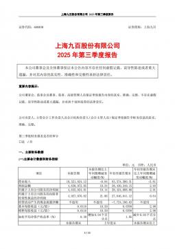 [企业年报]上海九百:上海九百2025年第三季度报告(银创产业通www.chanyetong.net)
