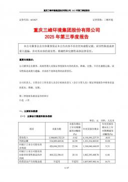 [企业年报]三峰环境:2025年第三季度报告(银创产业通www.chanyetong.net)