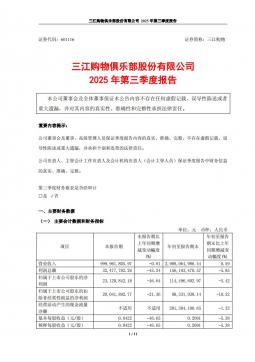 [企业年报]三江购物:三江购物2025年第三季度报告(银创产业通www.chanyetong.net)