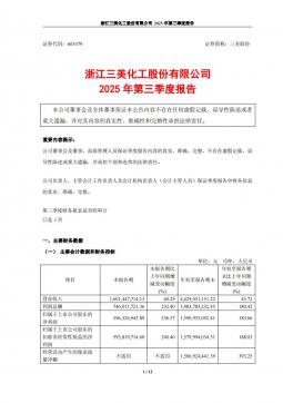 [企业年报]三美股份:浙江三美化工股份有限公司2025年第三季度报告(银创产业通www.chanyetong.net)