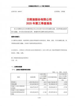 [企业年报]日照港:日照港2025年第三季度报告(银创产业通www.chanyetong.net)