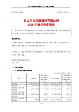 [企业年报]日出东方:日出东方控股股份有限公司2025年第三季度报告(银创产业通www.chanyetong.net)