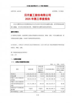 [企业年报]日月股份:日月重工股份有限公司2025年第三季度报告(银创产业通www.chanyetong.net)