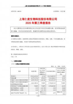 [企业年报]仁度生物:2025年第三季度报告(银创产业通www.chanyetong.net)