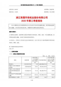 [企业年报]荣晟环保:浙江荣晟环保纸业股份有限公司2025年第三季度报告(银创产业通www.chanyetong.net)
