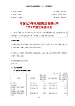 [企业年报]绿色动力:2025年第三季度报告(银创产业通www.chanyetong.net)