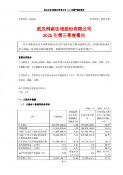 [企业年报]科前生物:武汉科前生物股份有限公司2025年第三季度报告(银创产业通www.chanyetong.net)