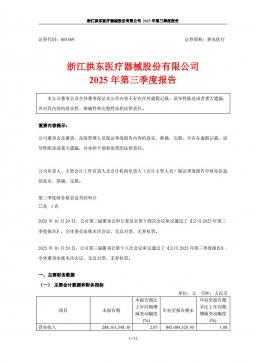 [企业年报]拱东医疗:拱东医疗:2025年第三季度报告(银创产业通www.chanyetong.net)