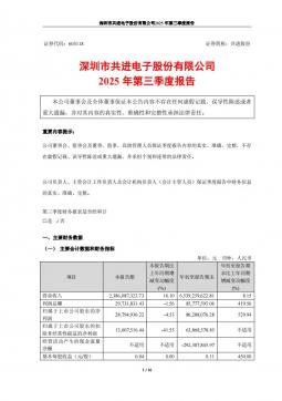 [企业年报]共进股份:2025年第三季度报告(银创产业通www.chanyetong.net)
