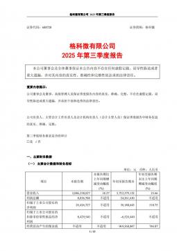 [企业年报]格科微:格科微有限公司2025年第三季度报告(银创产业通www.chanyetong.net)