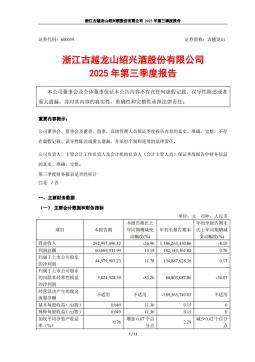 [企业年报]古越龙山:古越龙山2025年第三季度报告(银创产业通www.chanyetong.net)