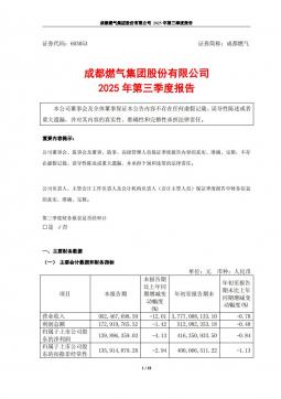 [企业年报]成都燃气:成都燃气2025年第三季度报告(银创产业通www.chanyetong.net)