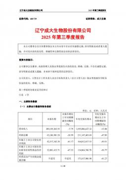 [企业年报]成大生物:辽宁成大生物股份有限公司2025年第三季度报告(银创产业通www.chanyetong.net)