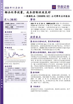 [个股研究]300898_公司事件点评报告:椰品旺季放量,成本控制收效良好(银创产业通www.chanyetong.net)