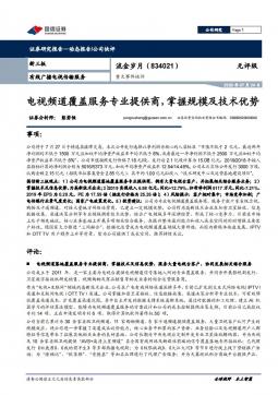 [个股研究]920021_精选层企业专题报告(三十二):深耕广电行业,打造国内电视频道覆盖领域龙头服务商(银创产业通www.chanyetong.net)