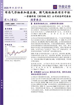 [个股研究]301548_公司动态研究报告:布局气浮轴承加速出海,燃气轮机轴承项目中标(银创产业通www.chanyetong.net)
