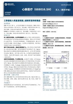 [个股研究]688016_三季度收入恢复高增速,创新研发持续推进(银创产业通www.chanyetong.net)